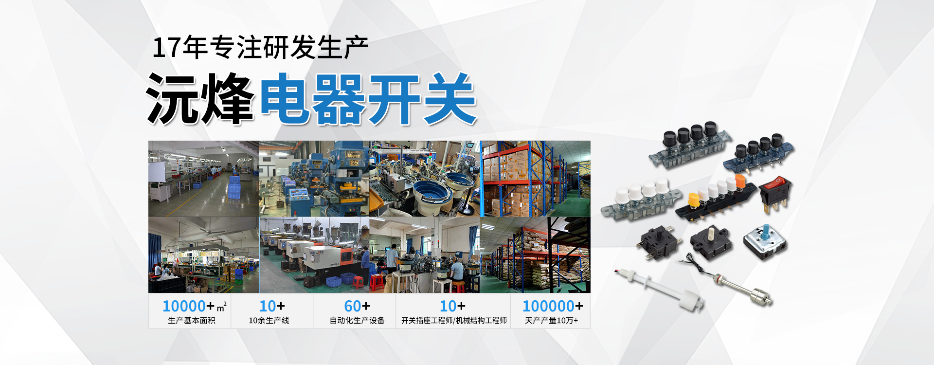 主要生產(chǎn)浮球開(kāi)關(guān)、接近開(kāi)關(guān)、琴鍵開(kāi)關(guān)、旋轉(zhuǎn)開(kāi)關(guān)、微動(dòng)開(kāi)關(guān)、船型開(kāi)關(guān)、拉線(xiàn)開(kāi)關(guān)以及接線(xiàn)座等系列產(chǎn)品。 -